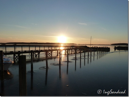 Blank is og solnedgang ved Veddelev havn sidste søndag..