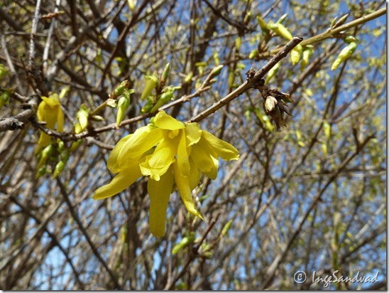 Ja forsytiaen står med fine blomster nu.. Det er rigtigt forår..