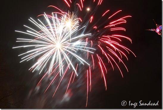 Jeg havde både kamera og stativ med derinde, jeg var på nettet for at læse, hvordan indstillingerne på kameraet skulle være for at få de bedste billeder af fyrværkeriet, og jeg havde såmænd også forsøgt at følge anbefalingerne, men resultatet var frustrerende. Fyrværkeriet var superflot, jeg mestrede bare ikke at forevige det. Jeg endte med 1.. måske 2 billeder som var nogenlunde brugbare resten var elendige. Jeg havde sådan glædet mig til at tage lækre billeder af store blomster på himlen, men jeg måtte erkende, at det ski ikke er særlig nemt.