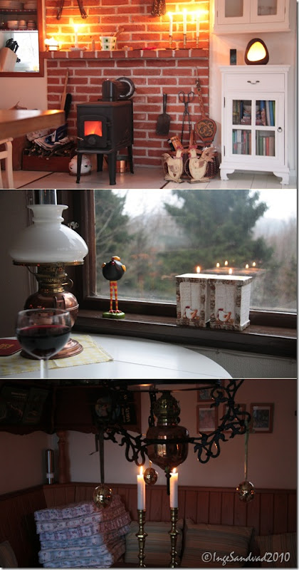 Vi er landet, bilen er tømt, fuglene er fodret, ovnen er fyldt, glasset er fyldt, køleskabet er fyldt, der er ild i stearinlysene, hønsene er sat frem, æggene er hængt op, jeg er på plads i sofaen i vindueshjørnet med den bærbare på skødet og udsigt til en regntung skov.