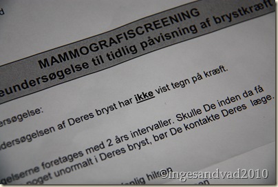 Det andet brev gav i første omgang lidt sommerfulgevingebasken i maven. Jeg var til mammografiscreening i torsdags. I løbet af 3 – 14 dage ville der komme brev.. i mit hoved var det blevet til, at hvis de fandt noget unormalt ville jeg hurtigt høre fra dem, hvis ikke.. ja så kunne der gå op til 14 dage.. I dag lå der brev fra Region Sjælland, alle sommerfugle lettede på en gang og slog med vingerne… HELT UDEN GRUND…… IKKE vist tegn…. pyt med regn ude, når der er sol, varme og glæde inde.